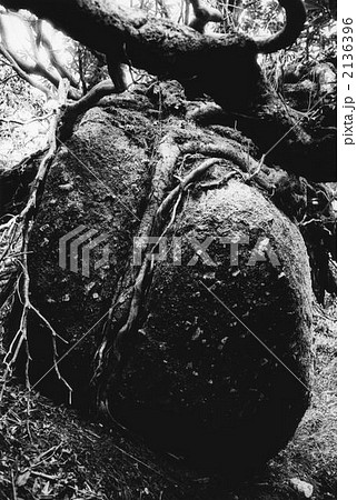 ヤマグルマに締め付けられた岩