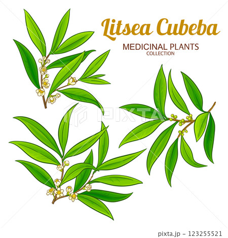 Litsea Cubeba Branches Colored Illustration