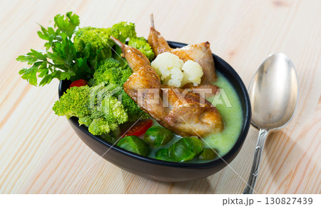 Cabbage soup with quails and greens