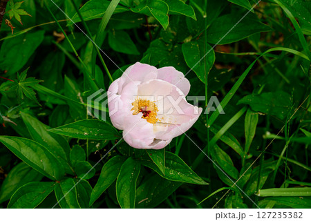 林床の花・日本固有種ヤマシャクヤクの清廉な花・横位置