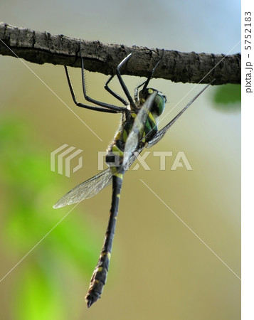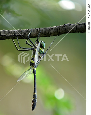 生き物 渓流沿いの木の枝で休むヒナヤマトンボ