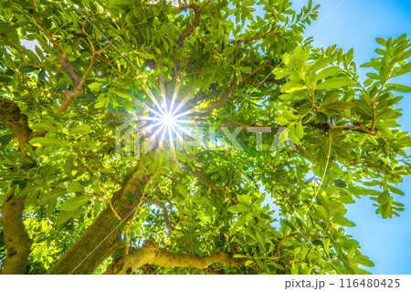日本の横浜都市景観 青空に映えるヤマモモ…希望の光、花言葉はただひとりを愛する、一途…=7月5日
