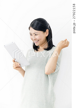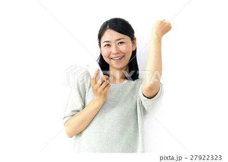 ビジネス、女性、ポーズセット、ガッツポーズ、喜び