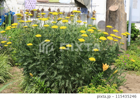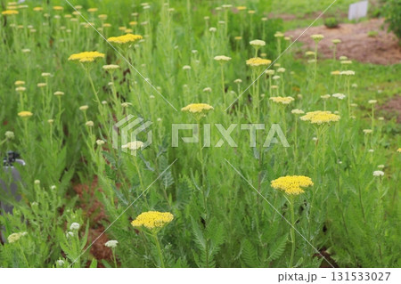 初夏の庭に咲くキバナノコギリソウの黄色い花