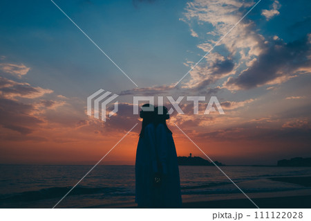 夕焼けの中に立つ女性