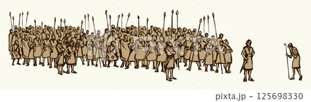 Vector drawing. The family fulfills God's command. Anoints the doorposts with the blood of the lamb