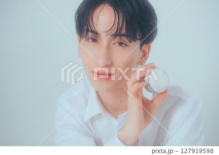 ジェンダーレスメイクをした若い男性 メンズコスメ スキンケア 美容