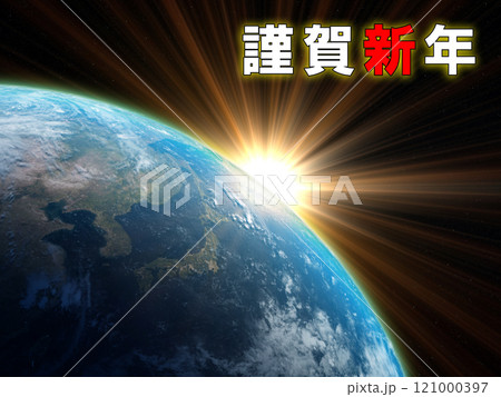 地球 正月 謹賀新年 日の出 太陽 日本中心