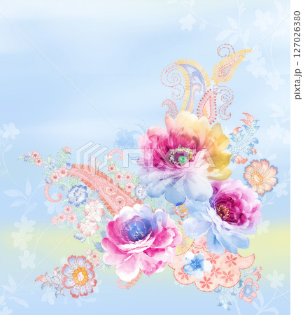 Colorful floral and leaf patterns creating a vibrant design suitable for various decoration projects