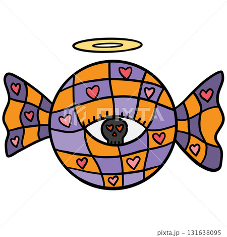halloween Colorful candy illustration with an eye and skull motif. in doodle color line style