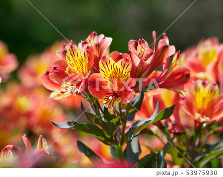 花壇で栽培されているアルストロメリアの春から初夏に咲くカラフルな花