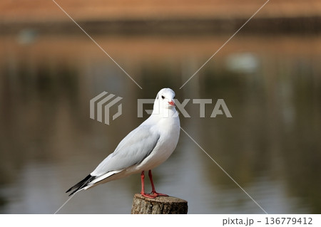 杭の上に佇みこちらを見つめるユリカモメのポートレート