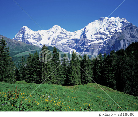 グリンデルワルトの牧草地から ベルナーアルプスの山々を望む グリンデルワルト スイス