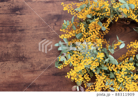 ミモザのリースとドライフラワー