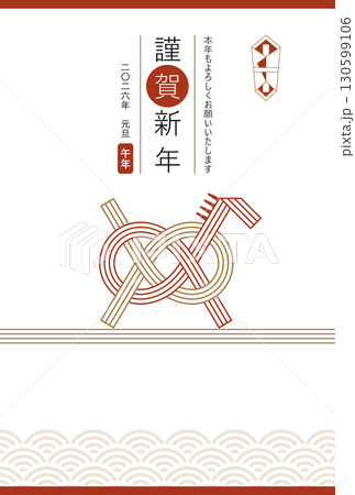 2026年年賀状デザイン シンプルな馬の形の水引 謹賀新年