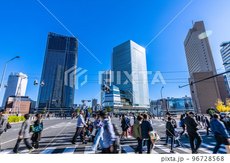 日本の横浜都市景観 BQ.1.1…いまだコロナ禍だが、桜木町駅前の日本丸交差点には多くの人出=11月