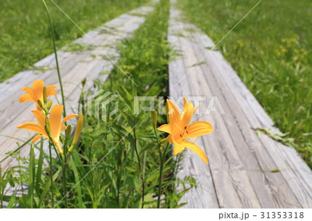 夏の尾瀬 下田代付近のニッコウキスゲ咲き始め