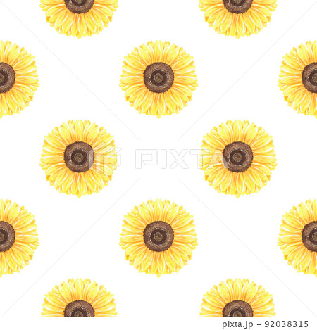 Sunflowers seamless pattern. Watercolor floral illustration. Isolated on a white background.