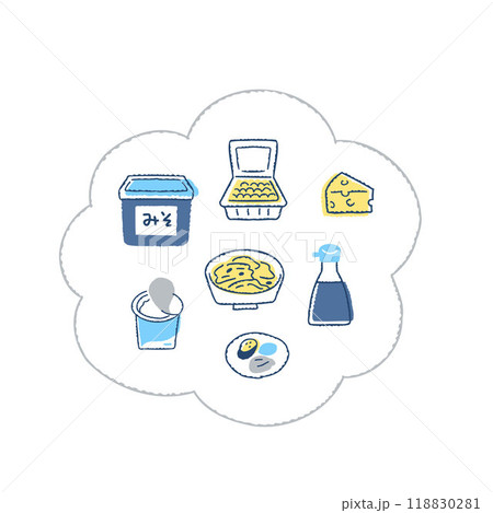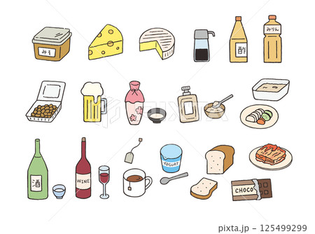 いろんな発酵食品の手描きイラストセット(モノクロ)