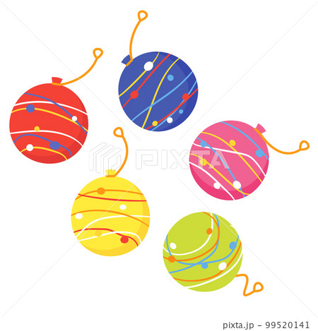 お祭りのカラフルな水ヨーヨーのセットのイラスト