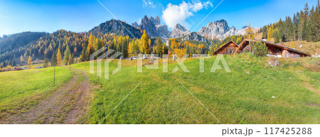 Fabulous view of mountains and valleys with larch forest and wonderful sky are located in Filzmoos