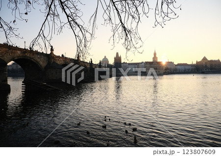 View of the sunset over Charles Bridge in the enchanting city of Prague
