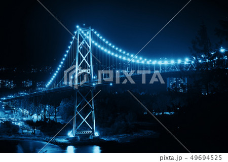 ライオンズゲートブリッジ中心の夜景写真 バンクーバー ブリティッシュコロンビア カナダ