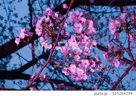 牧之原市の勝間田川の春のライトアップされた夜桜の風景(静岡県)
