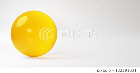 白背景に黄色のガラスのような球体。コピースペース。3D(横長)
