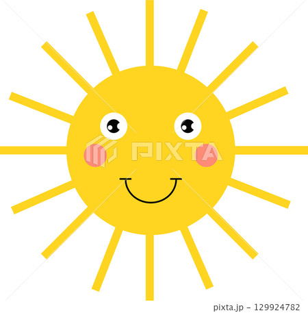 Cartoon sun with a friendly smile and rosy cheeks radiating warmth and happiness on a sunny day