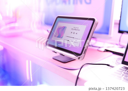 Futuristic Neon Geometric Digital Background, glowing elements and an abstract aesthetic