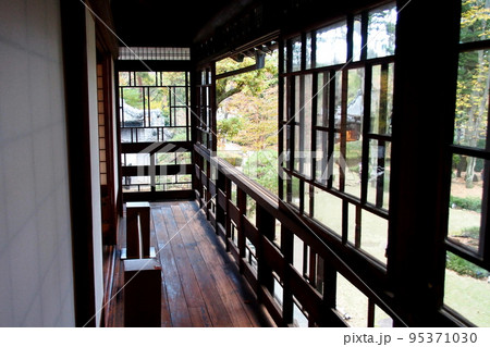 江戸東京たてもの園、高橋是清邸の格子戸と廊下【東京都小金井市】