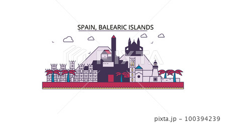 Spain, Balearis Islands tourism landmarks, vector city travel illustration