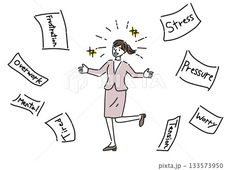 仕事や家事から解放された女性シンプル線画