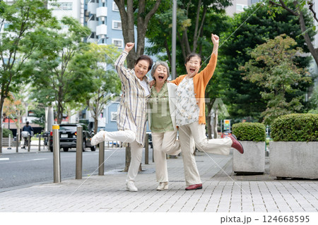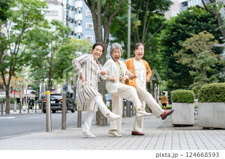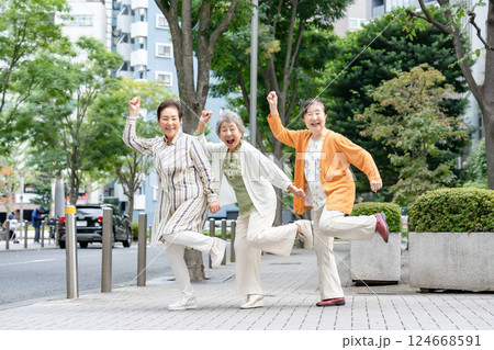 シニア 女性 仲良し 笑顔 全身