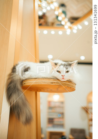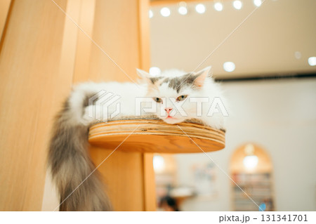 ペットショップでくつろぐペルシャ猫または、スコティッシュフォールドまたは、フォールデックス