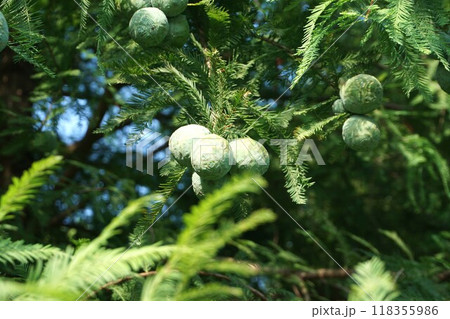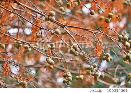 風景自然植物写真 ヌマスギの実り 生きた化石のラクウショウ