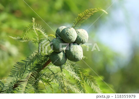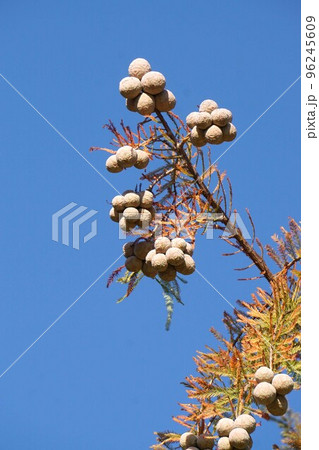 風景自然植物写真 ヌマスギの実り 生きた化石のラクウショウ