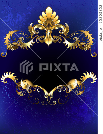 blue curtains, gold columns and frames