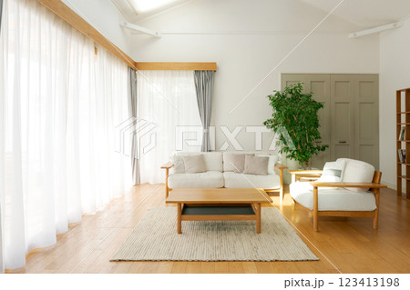 ソファーやキャビネットのあるおしゃれなリビングルーム