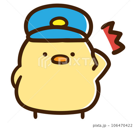 警察の帽子をかぶって敬礼をするかわいいひよこのデフォルメイラスト