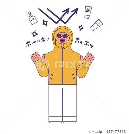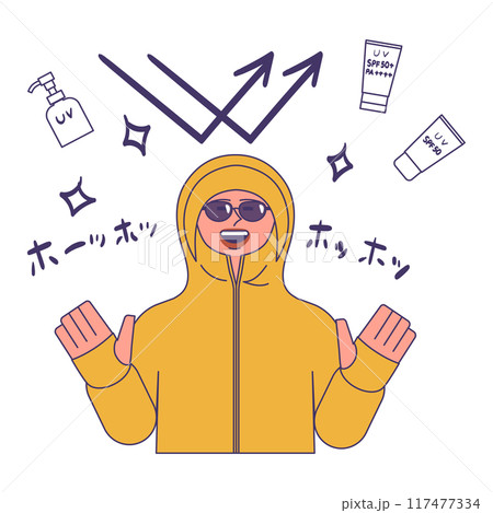 日焼け対策をする女性と後ろ姿の人のイラスト