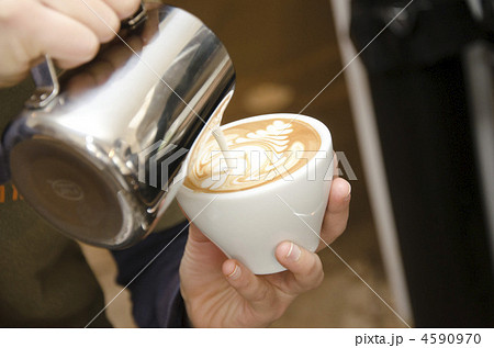 美味しいラテアートのコーヒーのイメージ素材