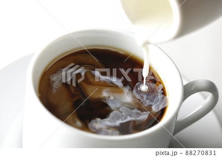 コーヒーにミルクを入れてるシーン