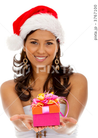 Female Santa with a gift