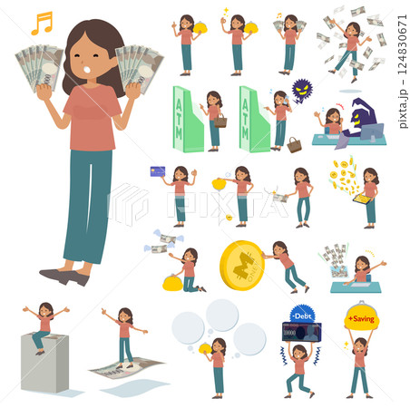 お金や経済に関する褐色肌女性のセット