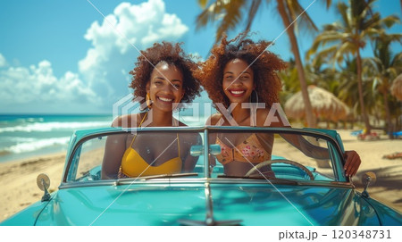Portrait of two bright Smiling Cuban girls on the streets of Havana