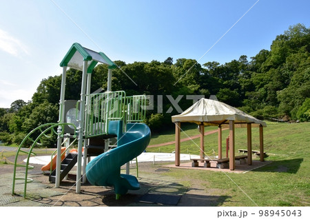 神奈川県中郡二宮町 ラディアン花の丘公園の遊具と新緑