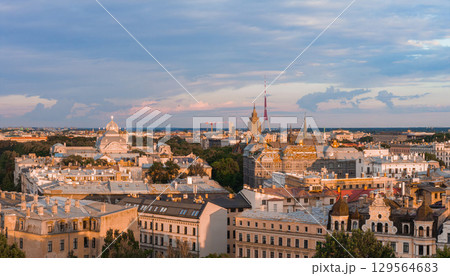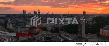 Aerial panoramic view Academy of Sciences and Riga Radio and TV Tower.
