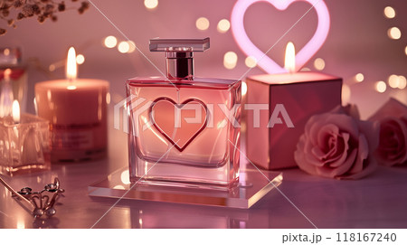 テーブルの上のキャンドルとハート型のオブジェ(AI生成画像)